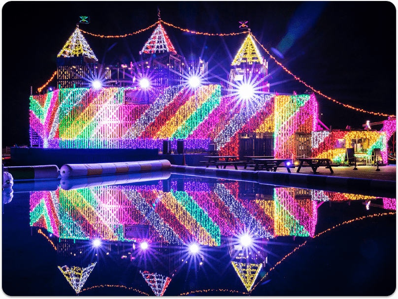 Japan’s first giant three-dimensional maze modeled after a ship. Navigate left and right surrounded by the light of the illuminations. Clear various hurdles and gather the six sailors, including the mate, the swordsman, and the ship doctor!