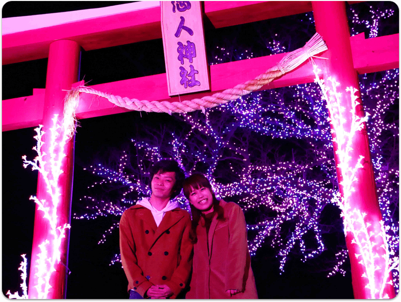 Come to the Lovers’ Shrine if the two of you are close. The glittering pink shrine archway can be seen only here. Get a heart padlock from the capsule dispensing machine and make a wish upon it.